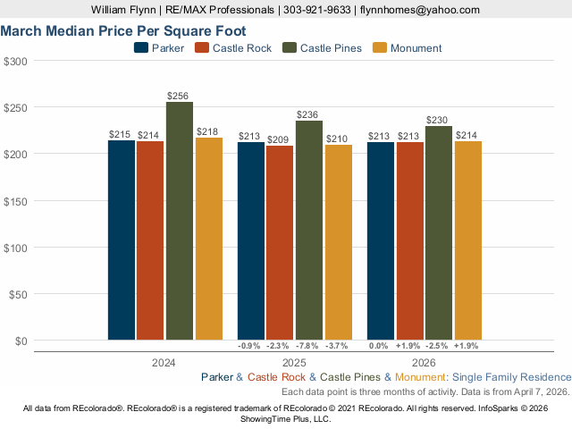 Parker vs Castle Rock vs Castle Pines vs Monument Median Price Per SQFT Live Update